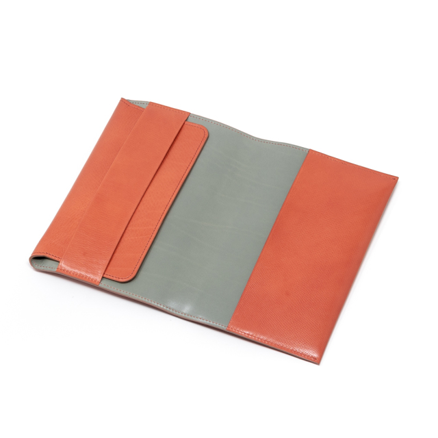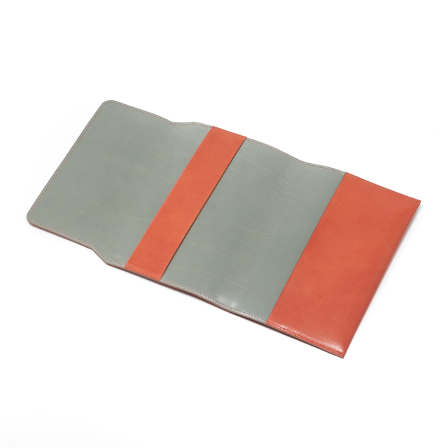 オーダーメイドで製作した四六判単行本サイズ用ブックカバー。デッドストックのカーフ素材で製作しました。渋みのあるレンガ色です。