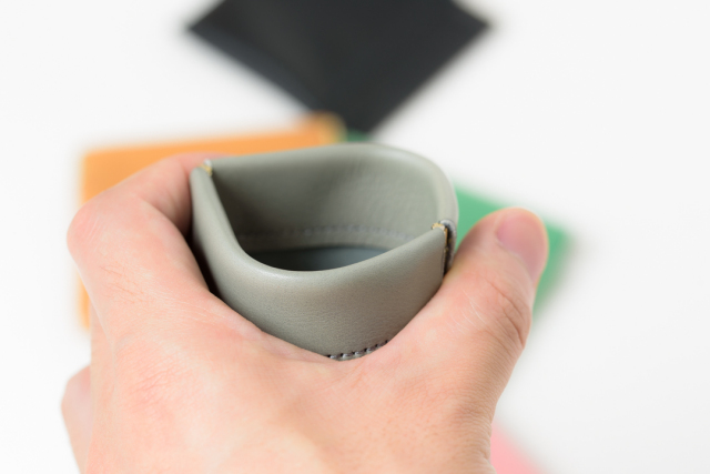片手で開閉できるスリムな小銭入れです。ケースの端を握ることでワンタッチ開閉が可能なコインケース。アクセサリーケースとしても有用で、仕事中にアクセサリーをはずす必要がある場合や、保管用としても使えます。デッドストックの上質なカーフを使用しました。