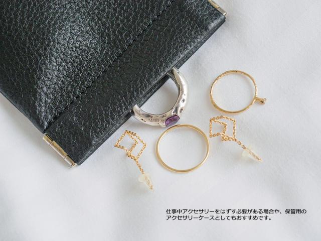 ケースの端を握ることでワンタッチ開閉が可能なコインケース。アクセサリーケースとしても有用で、仕事中にアクセサリーをはずす必要がある場合や、保管用としても使えます。