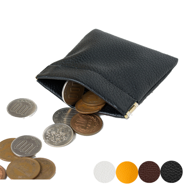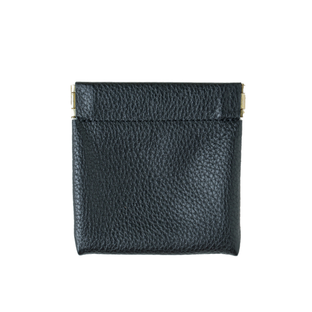 片手で開閉できるスリムな小銭入れです。ケースの端を握ることでワンタッチ開閉が可能なコインケース。アクセサリーケースとしても有用で、仕事中にアクセサリーをはずす必要がある場合や、保管用としても使えます。半永久持続の防水防汚レザーを使用しました。