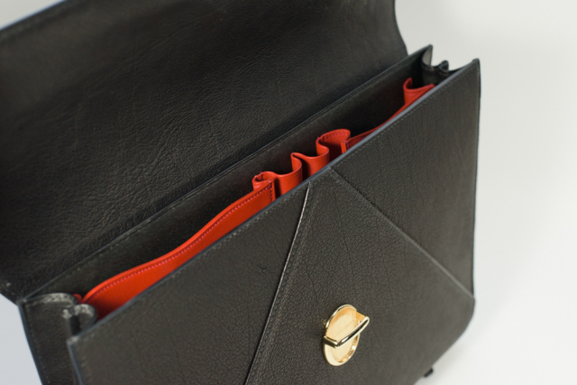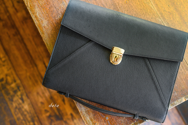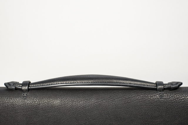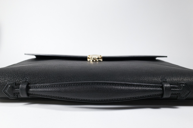 手縫いのブリーフケースです。クラッチバッグとして使用する為、ハンドルを底に取り付けて防犯性を高めました。
