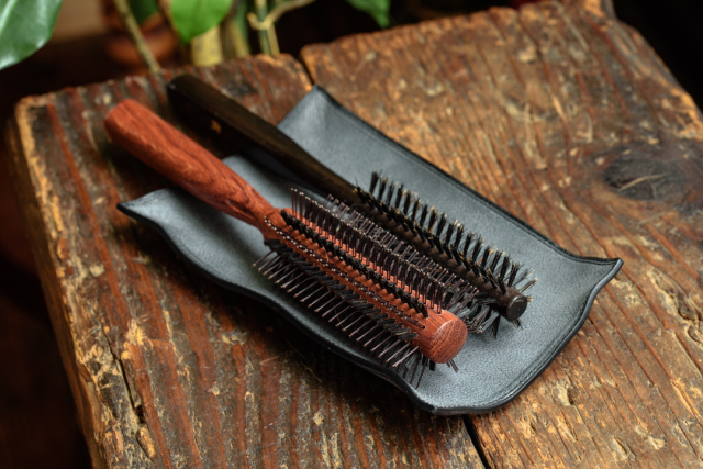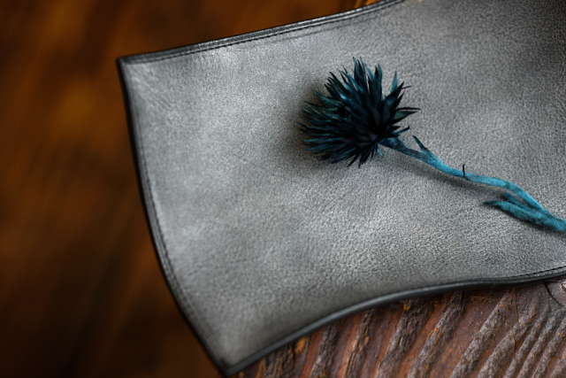 イタリア製の蝋引き革を使用しました。使い込むと白い蝋が取れ、革地が見えていきます。使い込むほどに光沢の出る革なので、時の移ろいを感じながら使う楽しみがございます。