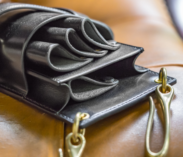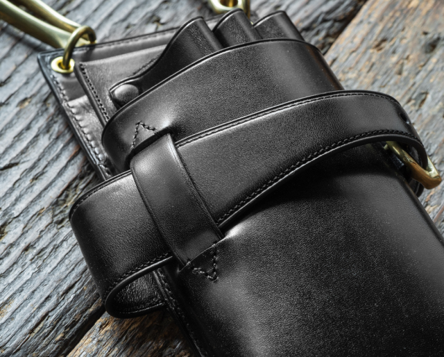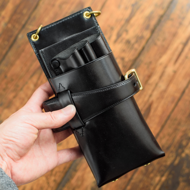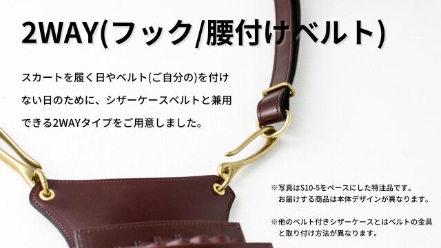 3丁用シザーケースS06-3をベースに、3丁用→4丁用、ベルトタイプ→フックタイプに変更を施しました。