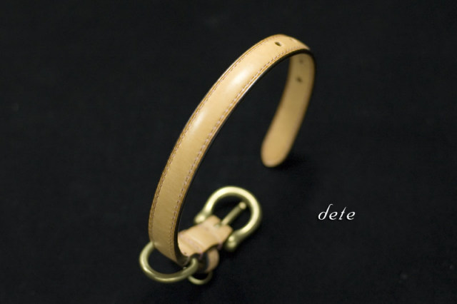 納期も短くお願いしてしまったのですが、とても丁寧に作っていただき、とても満足しております。 始めはピンクの革で考えていたのですが、思っていた色がなかったため、ヌメ革にピンクのステッチ、真鍮の金具でお願いしました。 真鍮の金具なので今使っているのより少し重たいので、大丈夫かな?って思っていたのですが、本ワンは全く気にしてない様子で一安心。 サイズもピッタリでした。 レッドの毛色にヌメ革で、首輪が主張しすぎることもなく、お洋服を着ることが多いので、ヌメ革にして良かったと思います。 これから色の変化も楽しんでいきたいと思います。 この度はありがとうございました! 素敵なプレゼントを贈ることが出来ました! |