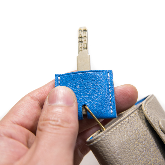鍵の開け閉め時に、手で触れる部分を革で覆うので、かじかんだ手にも優しい商品です。