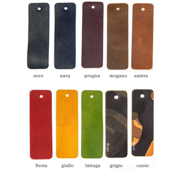 コードをまとめたり、キーホルダーにしたり、ブックマーカーに使ったり、冷蔵庫にメモをクリップしたり・・・カラフルなイタリアンレザーをあなただけの使い方で楽しんでください。