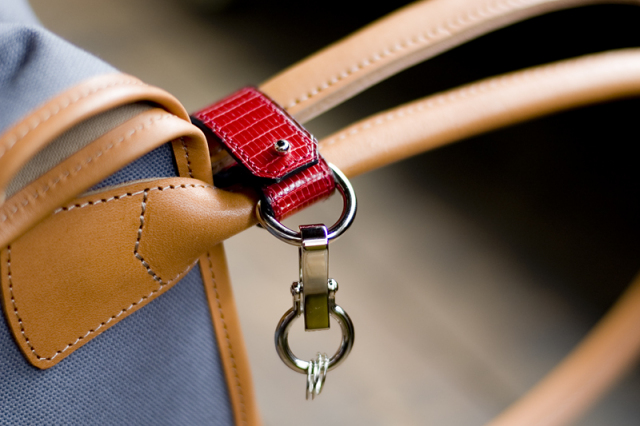 留める金具が2つ付いているので、外側の金具を外してもバッグハンドルやケーブルからYUFUが外れることはありません。取り外しできるクリップとキーリングが付属します。